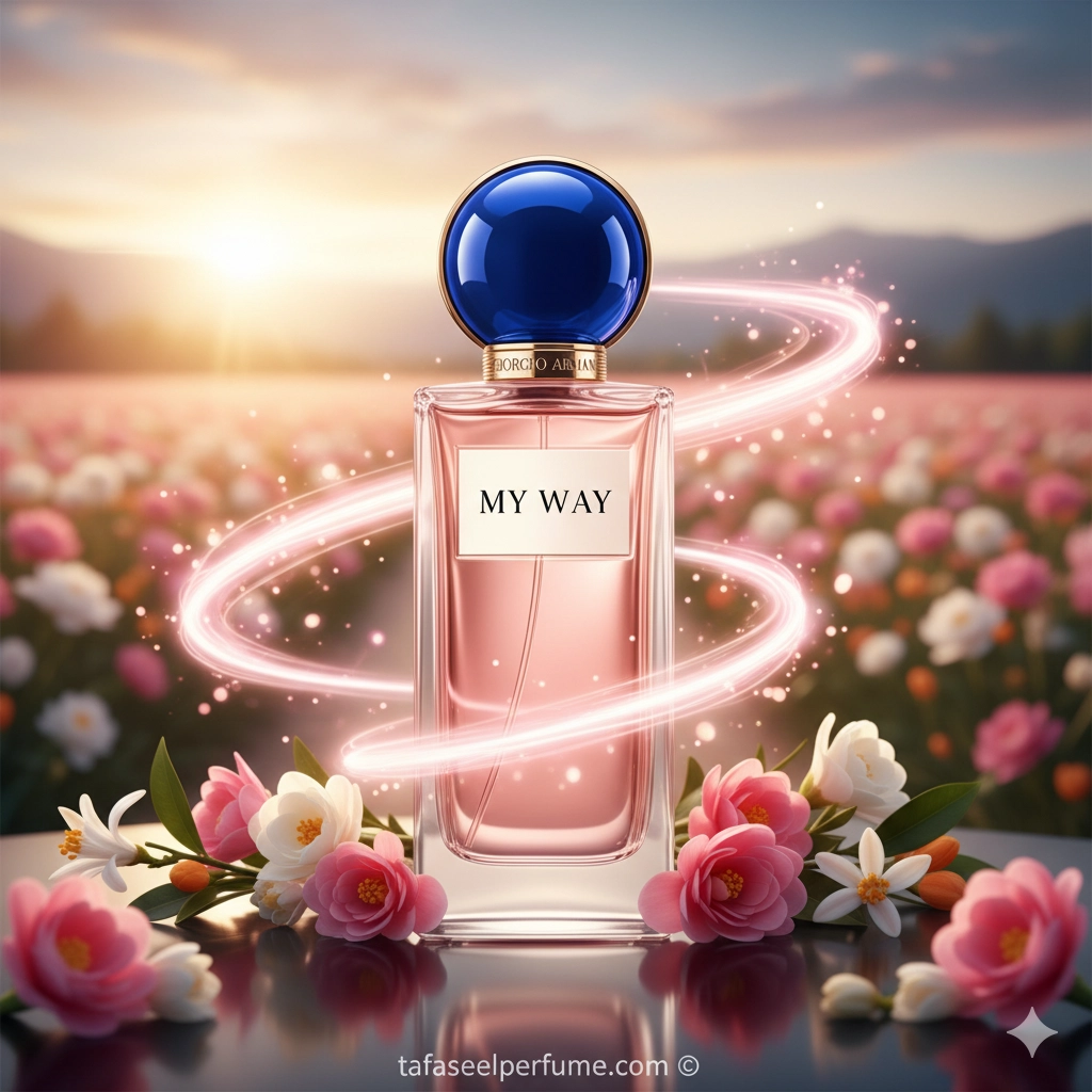 Understanding My Way Giorgio means reading its pyramid. The top notes typically offer a fresh, radiant opening — citrus elements or light green aldehydes that immediately lift the mood. The heart showcases floral complexity, where jasmine, tuberose, or orange blossom often play a central role, delivering an elegant, sociable warmth. Finally, the base grounds the composition with gentle woods, soft musks, and amber or vanilla facets that provide persistence and a tactile softness. Each layer is intended to be harmonious: the brightness never overshadows the depth, and the base supports rather than weighs down the florals.